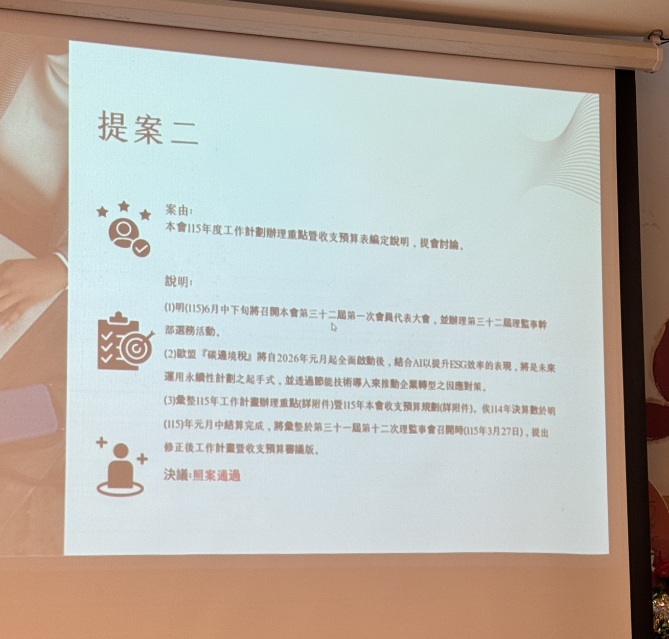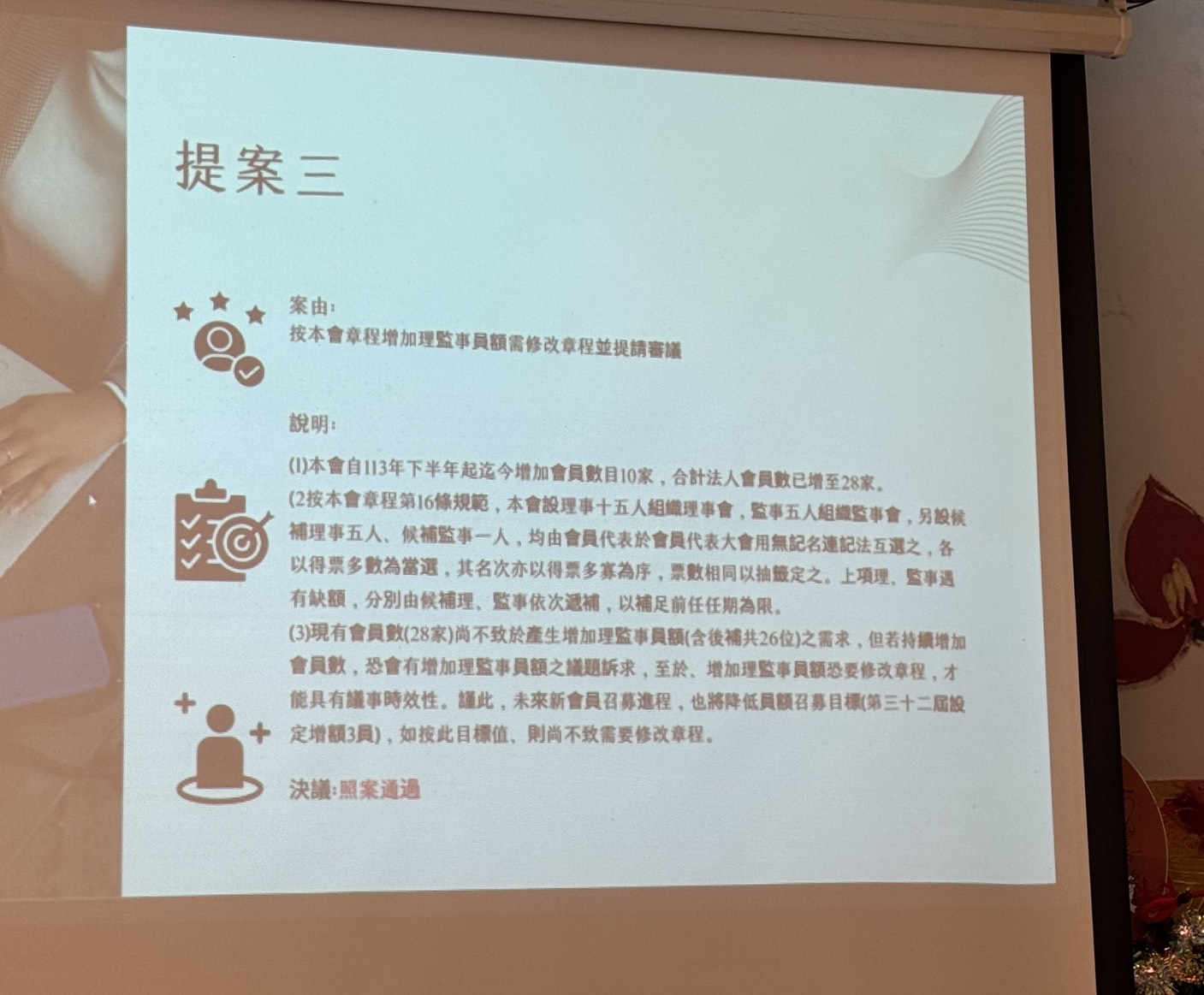- 議案順利通過,歡迎新會員加入