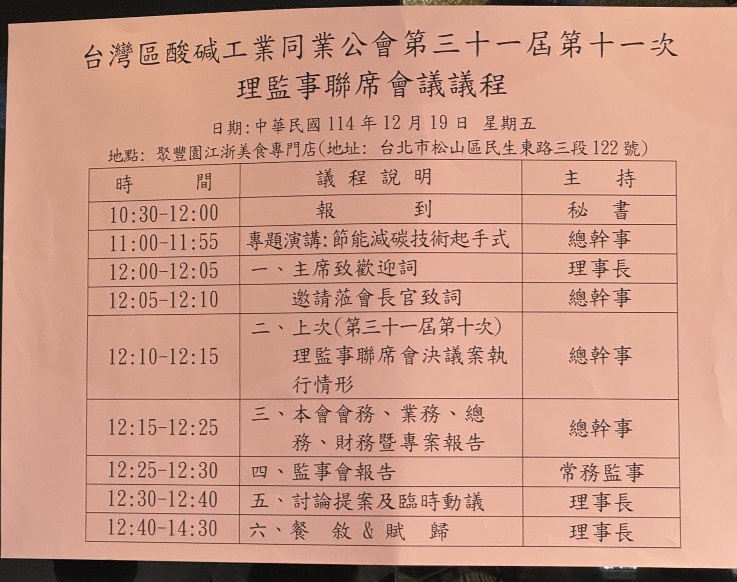 - 在理監事們的支持與參與下,本次聯席會議圓滿完成,公會也將持續凝聚共識,攜手推動酸鹼工業穩健前行。