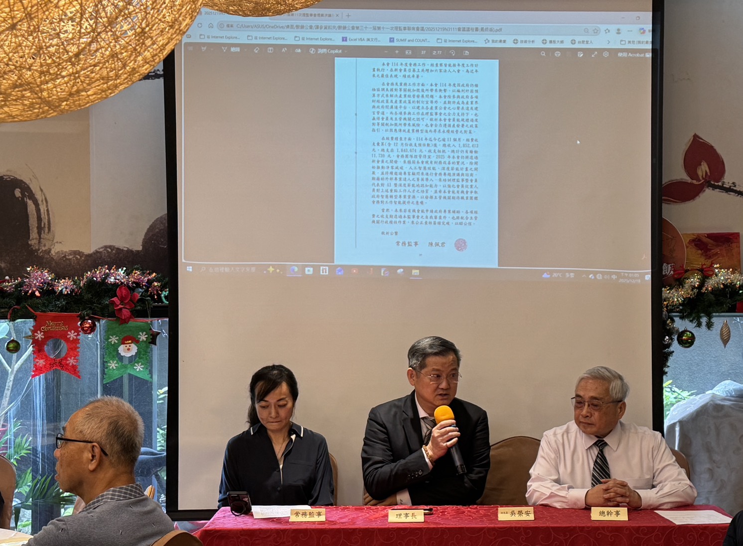 - 此外,本次會議特別因應近年來產業最受關注的熱門議題,規劃「節能減碳」專題演講,分享相關趨勢與實務方向,期盼透過專題內容的交流,讓與會理監事在公會會務之外,也能對產業未來發展及永續經營有所收穫。